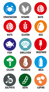 Our Dishes are prepared in area where allergenic ingredients are present, so we cannot guarantee that dishes are 100% free of these ingredients. Some dishes may contain traces of nuts, gluten or other allergenic ingredients, please ask before you order.